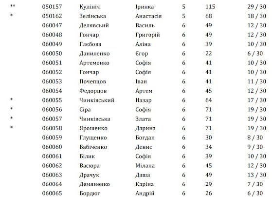 Олефіренко Н.М. - 70 учнівРезультати Кам'янський ліцей №1 5-11 класи Перегляд
